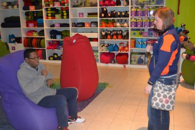It was was through this trial-and-error process that students decided that having Yogibos in their classroom would be their best match. The students then did a consumer review report on different products that are on the market. Through this, they learned how to communicate their needs and wants. The students made contact with the company by having a company representative come to the school. Later, they visited the store to test out the company's various products. After returning from their field trip, the students created a brochure for others to see what products worked best and what products would work best specifically for their deaf and hard of hearing classroom. The students then collaboratively worked on a presentation for a proposal to get Yogibos in the classroom and to replace the desks. The students said they felt they couldn't sign as much with desks being in their way.