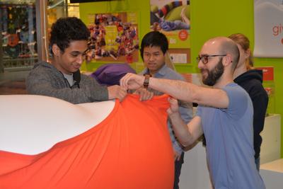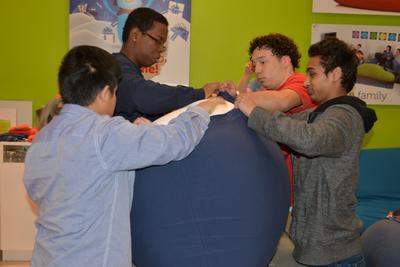 Over the past few months, students in Mrs. Phinney's Deaf and Hard of Hearing classes at Solvay High School have been working on a Project Based Learning (PBL) experience to make reading and literacy more engaging in the classroom. The students have been working collaboratively with the company Yogibo, a New Age bean bag furniture company that sells lounge bags, bean bag chairs, body pillows, rugs, and more. On March 4, as a result of their hard work, they were invited to the Yogibo store at Destiny Mall to create their own classroom furniture.