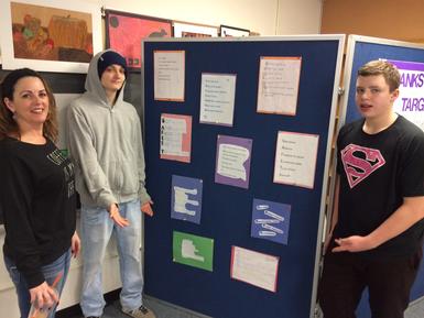 Pictured above: STARS sophomore Mark Timson and freshman Matt Graham stand with Trish Angrick of Evoqua to discuss the process their class used to create this powerful poetry display.