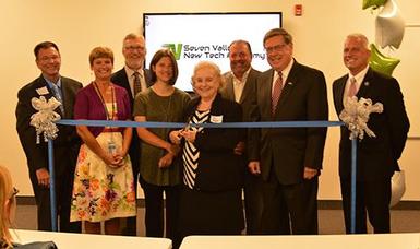 Our second New Tech school is officially open! Called Seven Valleys New Tech Academy, this cutting edge high school at 240 Watson St. in Cortland celebrated its GRAND OPENING and ribbon cutting this morning (9/12) with more than 60 guests that included local and state lawmakers, local school superintendents and administrators, guidance counselors, students, teachers, OCM BOCES trainers, local business leaders, parents and more. The school opened this year with 43 students and eight staff members.Seven Valleys embodies a national New Tech movement that now includes 128 high schools in more than 25 states across the country. Two years ago, in 2014, OCM BOCES opened its first New Tech high school in Liverpool, called Innovation Tech.
