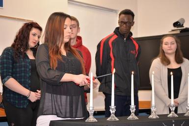 Pictured left: Hayli White, a New Vision Medical Professions student from the North Syracuse Central School District lights the 7th candle of the National Technical Honor Society. The candle she is lighting represents citizenship. The additional NTHS candles symbolize knowledge, skill, honesty, service, responsibility, scholarship and leadership.